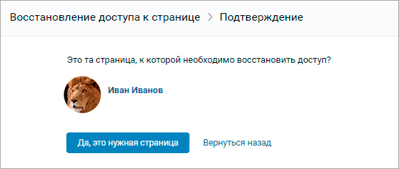 - Если информация совпадёт, то сервис отыщет вашу страничку. Тогда щёлкните по «Да, это нужная страница».