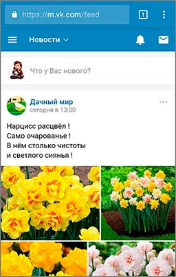 Вход в мобильную версию ВКонтакте (с планшета)